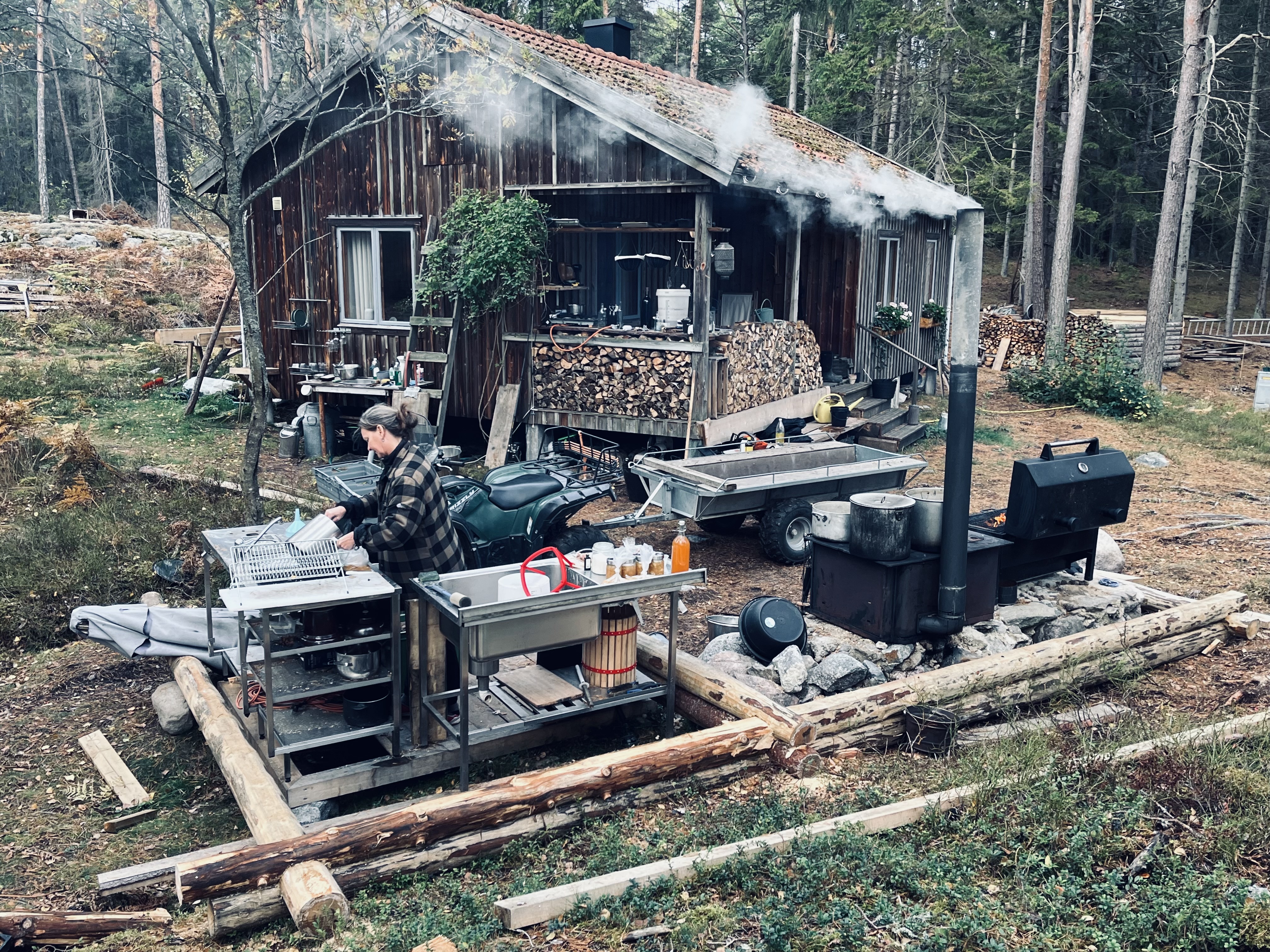 Det verkar vara tre huskroppar ihopsatta till en bod. En del med jordgolv och de andra två med dåliga golv.