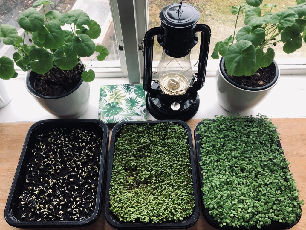 Mikrogrönt – snabb produktion och enligt olika källor väldigt näringsrikt. Måste kolla hur hållbar produktionen egentligen är.