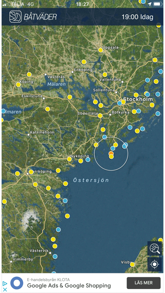 Drag på västligt gjorde norra hamnen på Öja väldigt gungig, hitta en bara ”vaggig” vik på Torös södra ”tarm”. Vindarna stadigt på Sydväst, mot eftermiddagen ev drag mot västligt. Klockan är arla, kaffepannan på spisen och snart dags för ett ”seglarmöte”, Gotland hägrar…