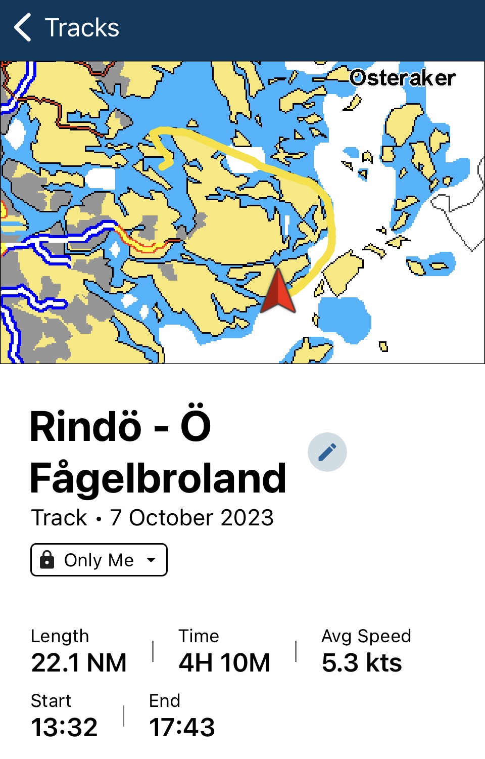 Vi gick från Rindö och kastade ankar i en vik på Fågelbrolandet. Det var blåsigt, vindlarmet som är satt på 15 m/s larmade mer eller mindre hela tiden , irriterande faktiskt. Nv vind gav oss en mycket behaglig slöt söt läns hela vägen. Då det var redigt byigt hissade vi bara Genua 4, hade toppar uppåt 19 M/s.